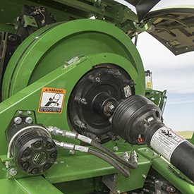 The one series LSBs store twine in single-row twine boxes. The twine is then routed to the sealed gear tensioners. The sealed tensioner gears have been proven to provide more consistent twine tension during knot formation. This increases knotter performance and consistency. Once the correct bale length is achieved, the tie system clutch is activated.