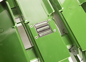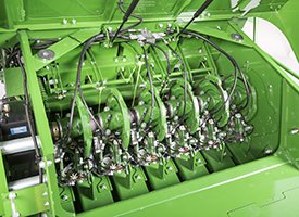 John Deere-designed knotters are designed for performance, reliability, and reduced maintenance requirements. The auto-lube system is integrated into the knotter frames, and two internal grease ports reduce the time spent on pre-baling maintenance.