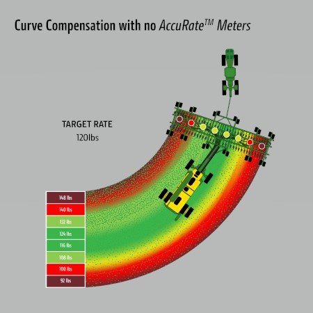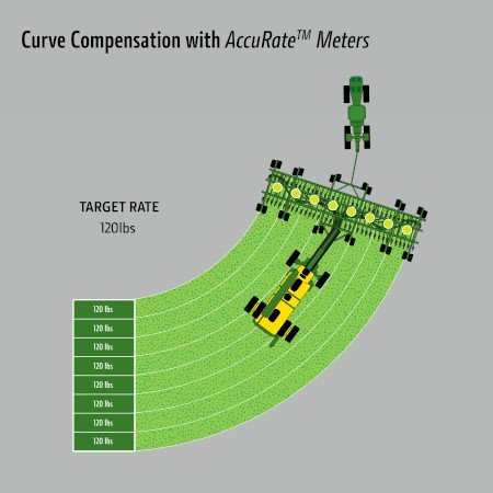 • *NOTE: Disclaimer for an 80-ft drill with 8 sections seeding at 4.5 mph around a 150-ft curve radius.