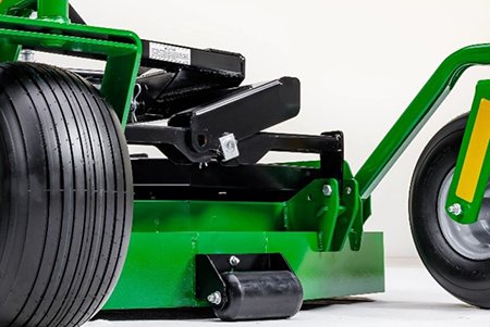 Cutting height can easily be controlled with front and rear caster wheel adjustments, cutting height ranges from 1 ½” to 5 ½” allowing you to set your Flex Wing Grooming Mower to optimal cut height.