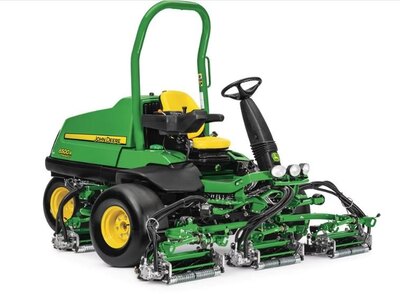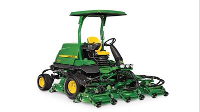 ↵ Five, 27-in. independent rotary decks with a 9-foot cutting width Deep shell deck design with exclusive rear discharge chute No-tool...