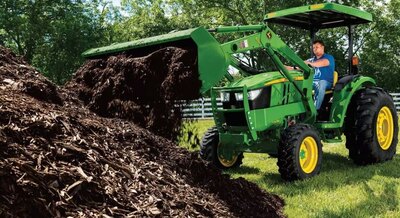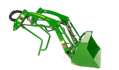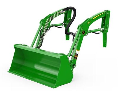 ↵ Compatible with 1023E and 1025R Tractors Curved boom design Quik-Change attachment carrier standard Parkable ...
