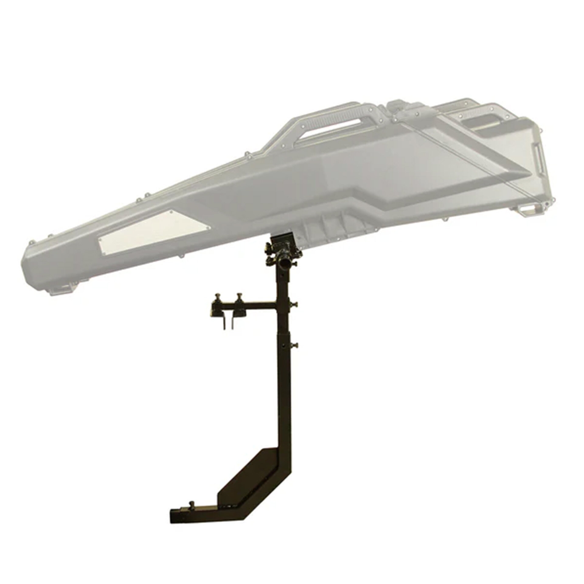 • Adjustable stabilization arm clamps onto tailgate or rear gear rack for enhanced stability